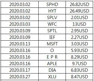 을 나름 고점에 팔아 현금을 확보하여 많이 떨어진 종목인 EPR, HYT, DIA, SPHD, SPLV